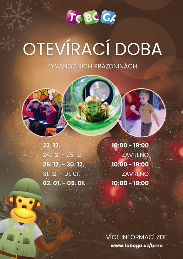Od 20. prosince do 4. ledna budeme mít otevřeno každý den od 10:00 hodin a platí prázdninové vstupné.