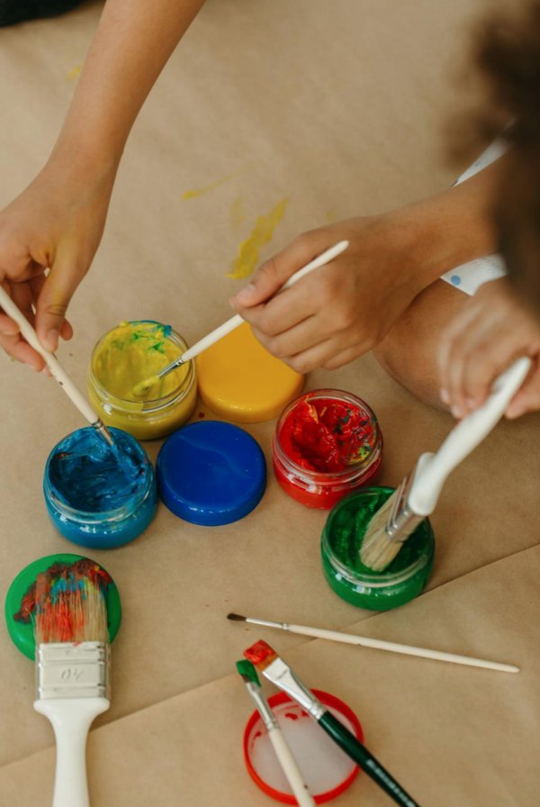 The class begins with a short introduction, a discussion of the topic, and a warm-up for the hands. This is followed by the main art session, organized by age group. When the weather is nice, activities can also take place outdoors in nature. At the end, children present their work, talk briefly about it, and help tidy up together.