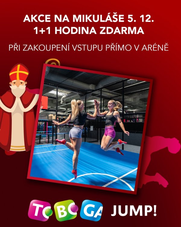 Už zítra na Mikuláše – 5. 12. – máme v Toboga JUMP! speciální akci 1+1 hodina ZDARMA!