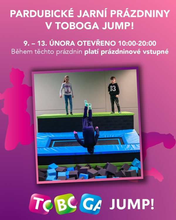 Od 9. do 13. února máme v Toboga JUMP! Hradec Králové otevřeno každý den od 10:00 do 20:00 a vy si u nás můžete užít hromadu zábavy! 🤩