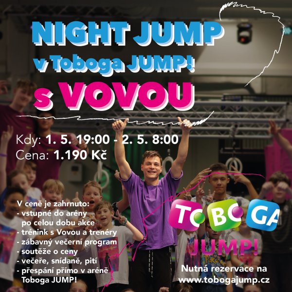 Už 1. KVĚTNA se Vova vrací do Toboga JUMP! Hradec Králové se svou NIGHT JUMP!