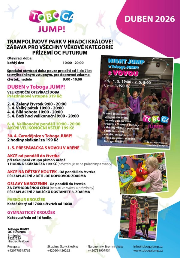 👉 Začátek měsíce odstartují Velikonoce, kdy se na vás těšíme každý den v běžných otevíracích hodinách - od čtvrtka do neděle za 319 Kč/hod., v pondělí za AKČNÍCH 199 Kč!