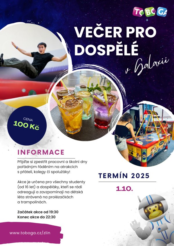 Akce pro všechny studenty (od 16 let) a dospěláky, kteří se rádi odreagují a zavzpomínají na dětská léta strávená na prolézačkách a trampolínách