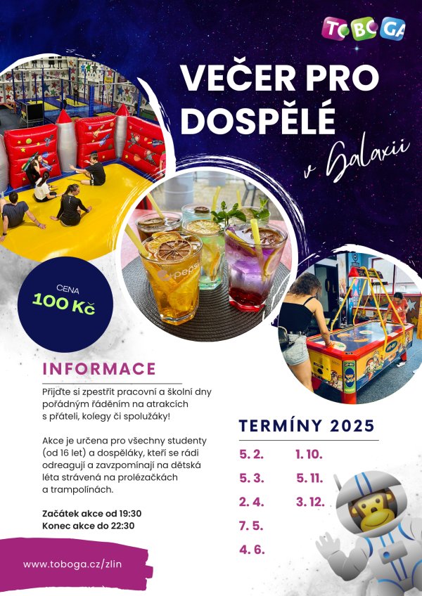 Akce pro všechny studenty (od 16 let) a dospěláky, kteří se rádi odreagují a zavzpomínají na dětská léta strávená na prolézačkách a trampolínách